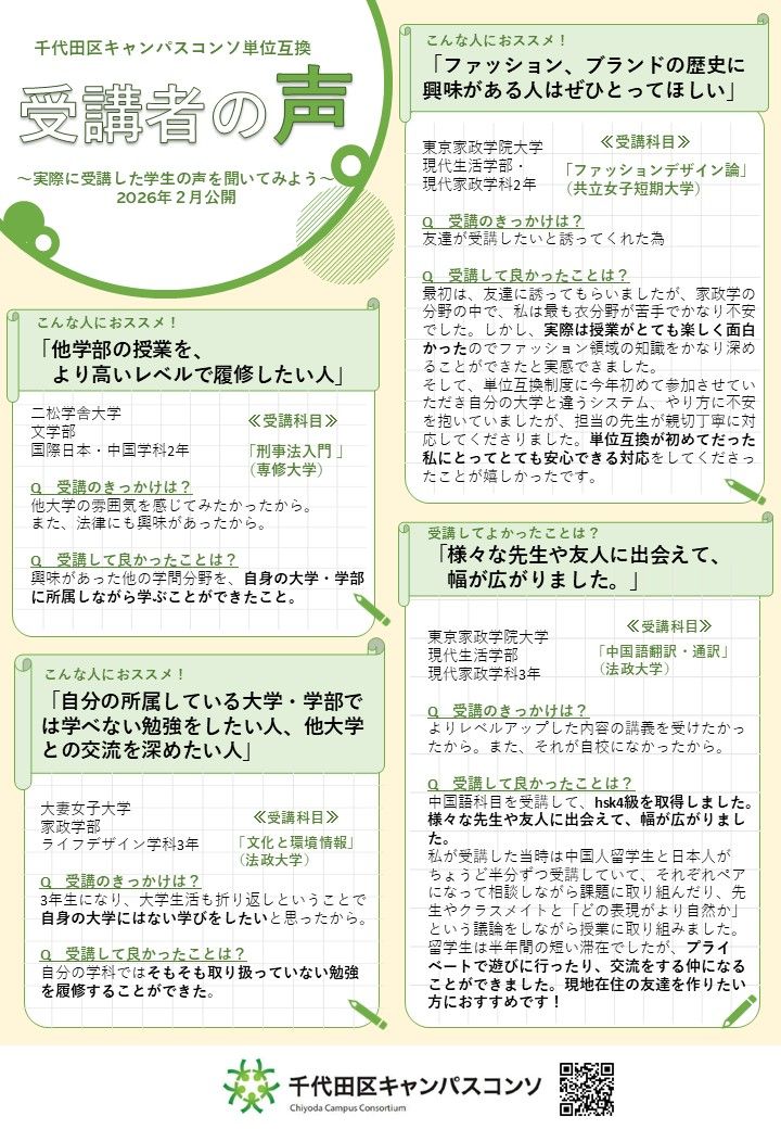 - 単位互換制度受講者募集ポスター(2026前期/春学期)