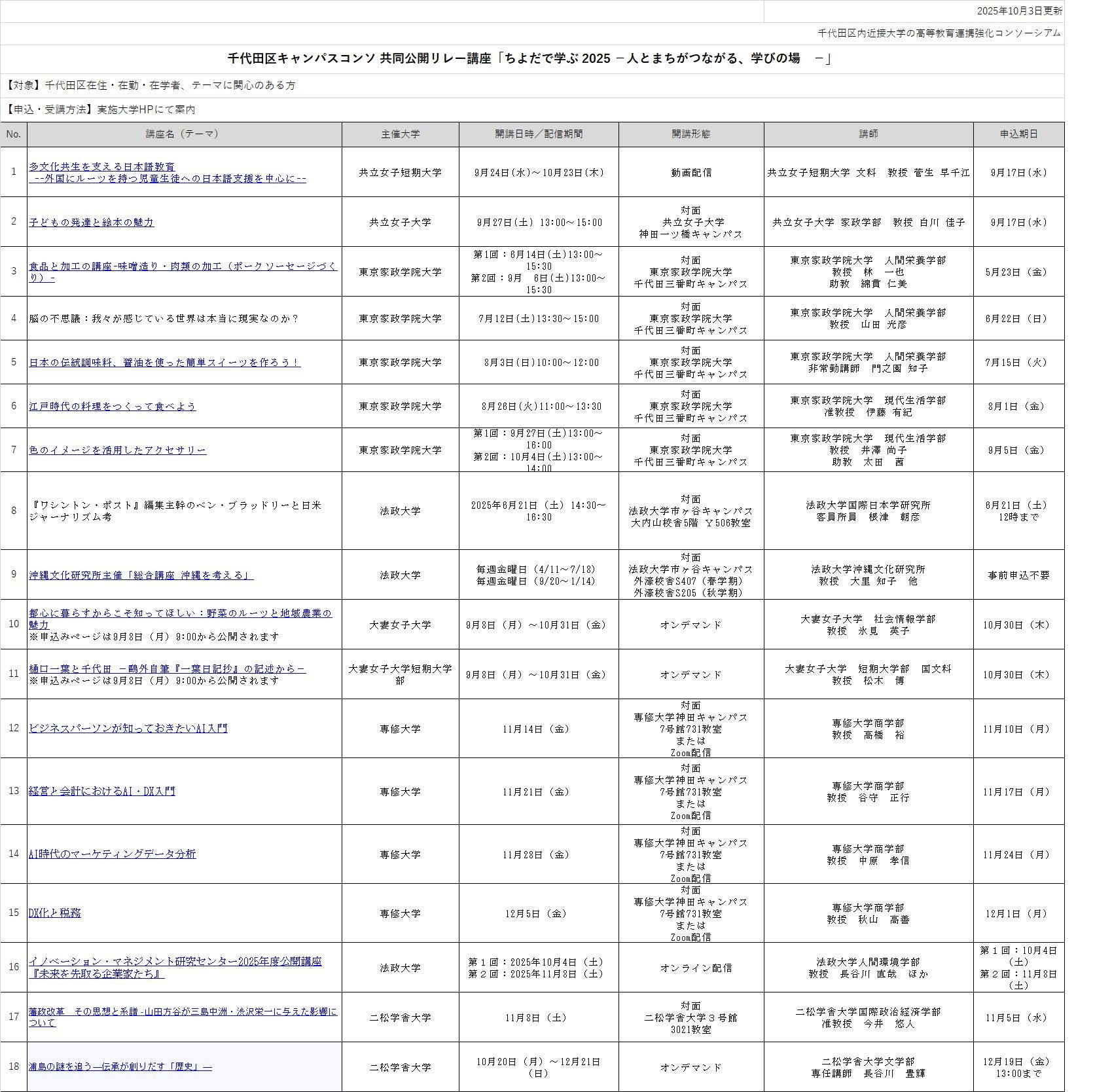 千代田区キャンパスコンソ_共同公開リレー講座_一覧