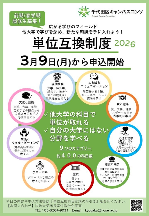 - 単位互換制度受講者募集ポスター(2026前期/春学期)